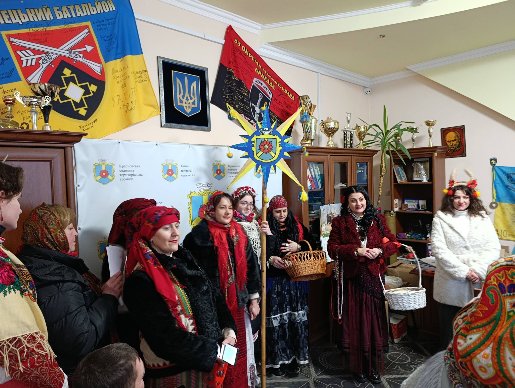 🎉Цього дня робочі кабінети, виробничі приміщення й коридори установ наповнилися не звичними службовими розмовами, а співом, сміхом і щедрівками. Маланка і Василь — давні символи українського народного свята — завітали до підприємств та установ Красненської й Буської громад, приносячи з собою тепло традицій і щиру віру в добро.