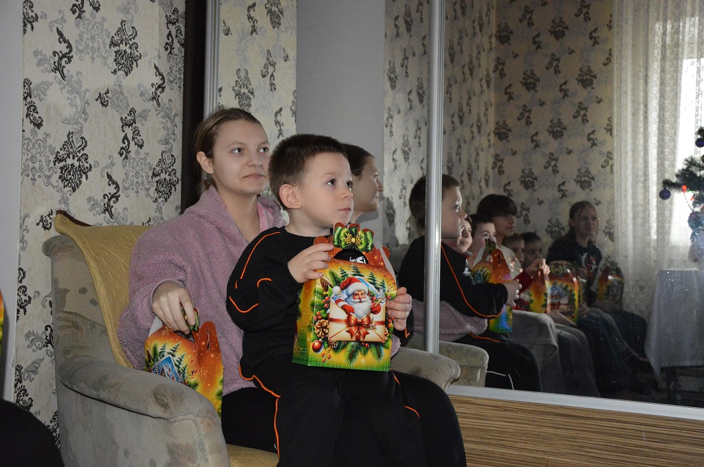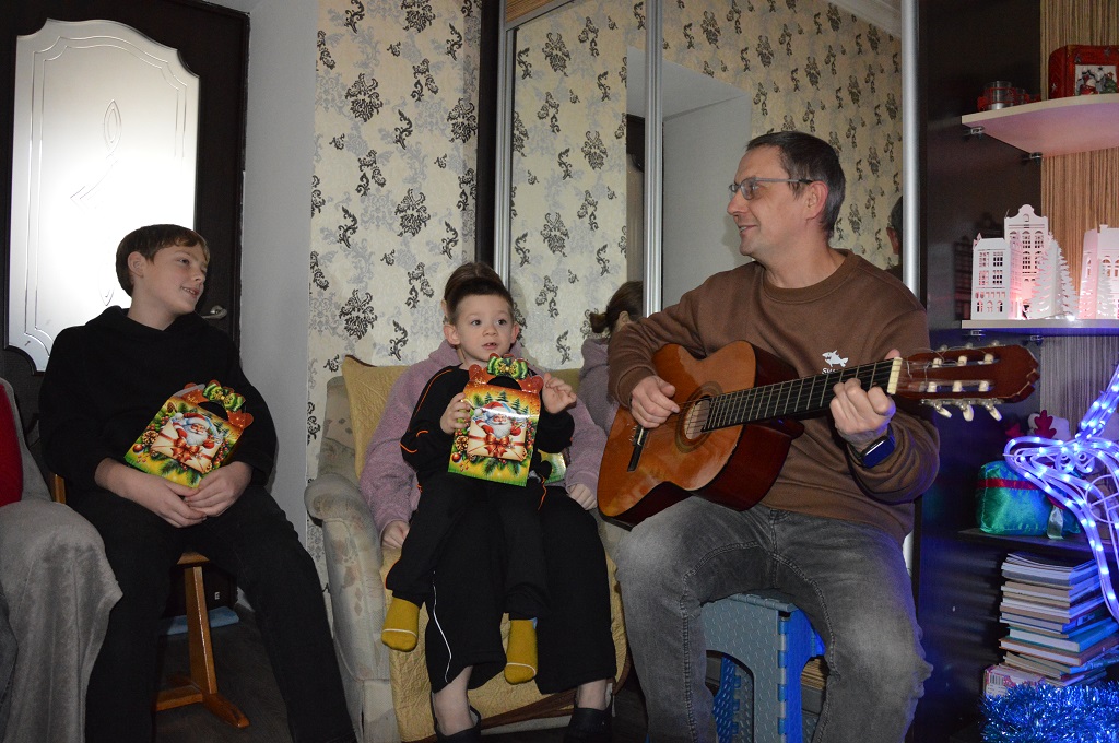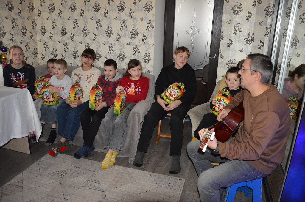 Гості подарували дітям солодощі, а у відповідь отримали щирі емоції та справжній святковий подарунок — власноруч зроблені листівки з побажаннями й передбаченнями, пісні під гітару біля каміна та вірші, продекламовані напам’ять. Навіть наймолодший Сергійко підготував і розповів вірш. Після цього хлопчик провів гостей кімнатами своїх братів і сестер.