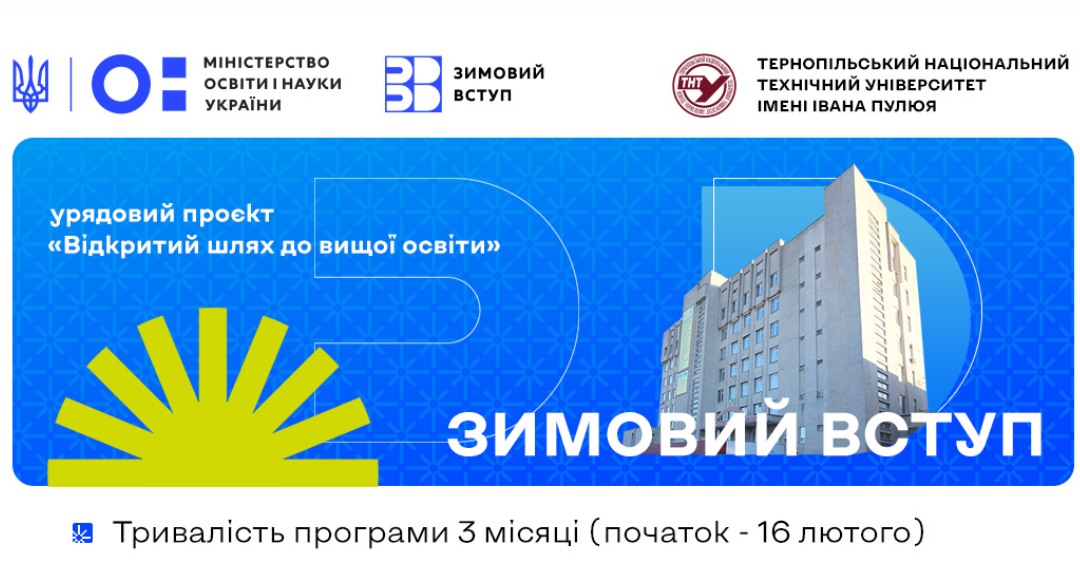 📚Тернопільський національний технічний університет імені Івана Пулюя долучився до урядового експериментального проєкту «Відкритий шлях до вищої освіти» та розпочинає набір на програму підготовки до НМТ — «нульовий курс». Вона покликана підтримати осіб, які постраждали внаслідок війни, та розширити доступ до вищої освіти.