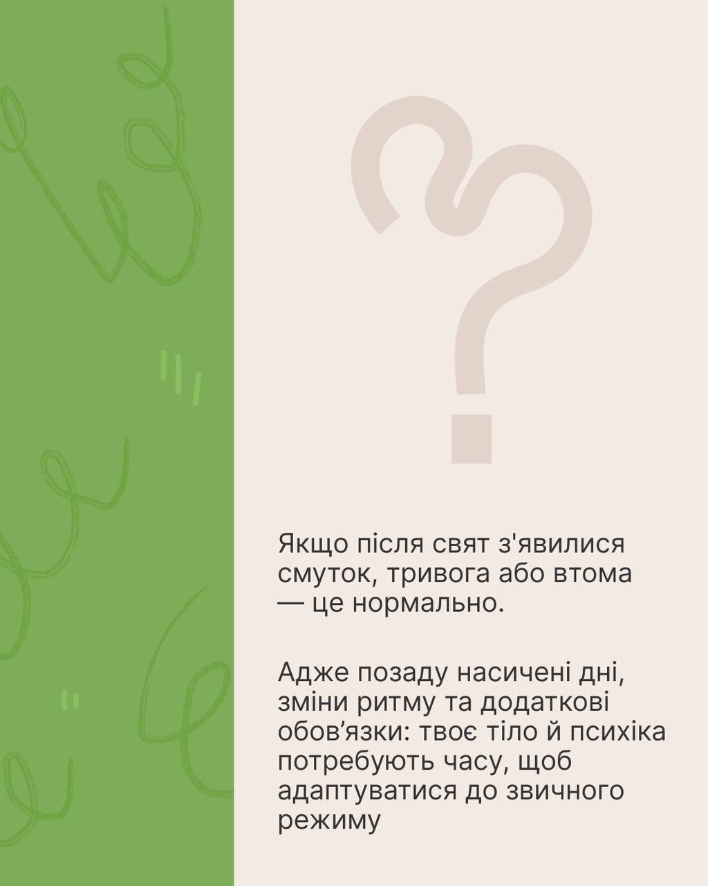 Тож не картай себе за погіршення настрою, підвищений рівень тривоги чи виснаження. Краще потурбуйся про себе. Дізнайся як — у каруселі 🫂