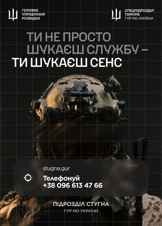 Підрозділ ГУР МО «Стугна» запрошує тих, хто хоче не просто бути в строю, а бути корисним і важливим. 🏴