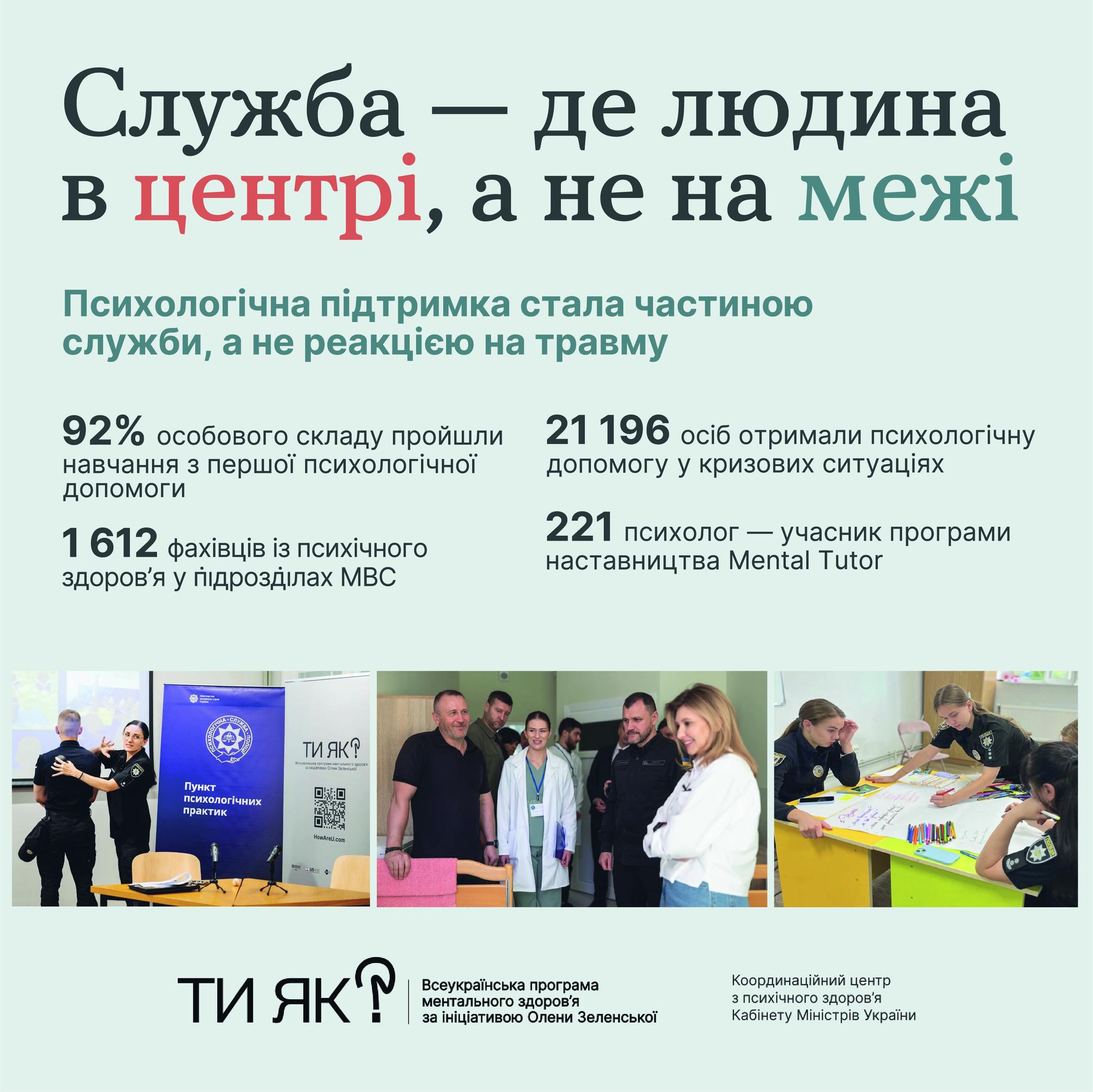 🚔 92 % особового складу Міністерства внутрішніх справ України пройшли навчання з першої психологічної допомоги, завдяки чому психологічну підтримку дістали майже 18,7 тис. постраждалих українців;