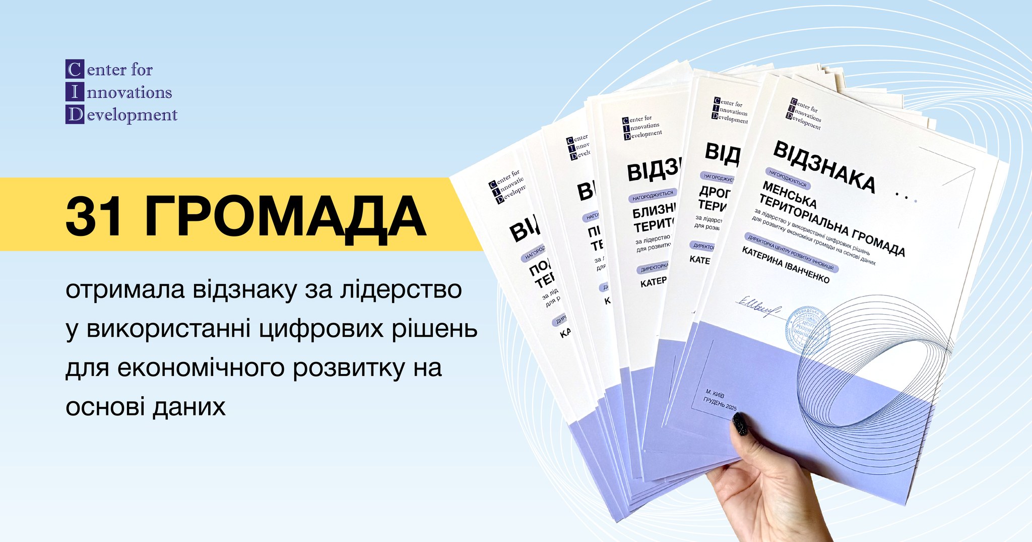 💪🏅31 громада України отримала відзнаки від Центру розвитку інновацій за лідерство у використанні цифрових інструментів і підходів, що допомагають ухвалювати управлінські рішення на основі даних.
