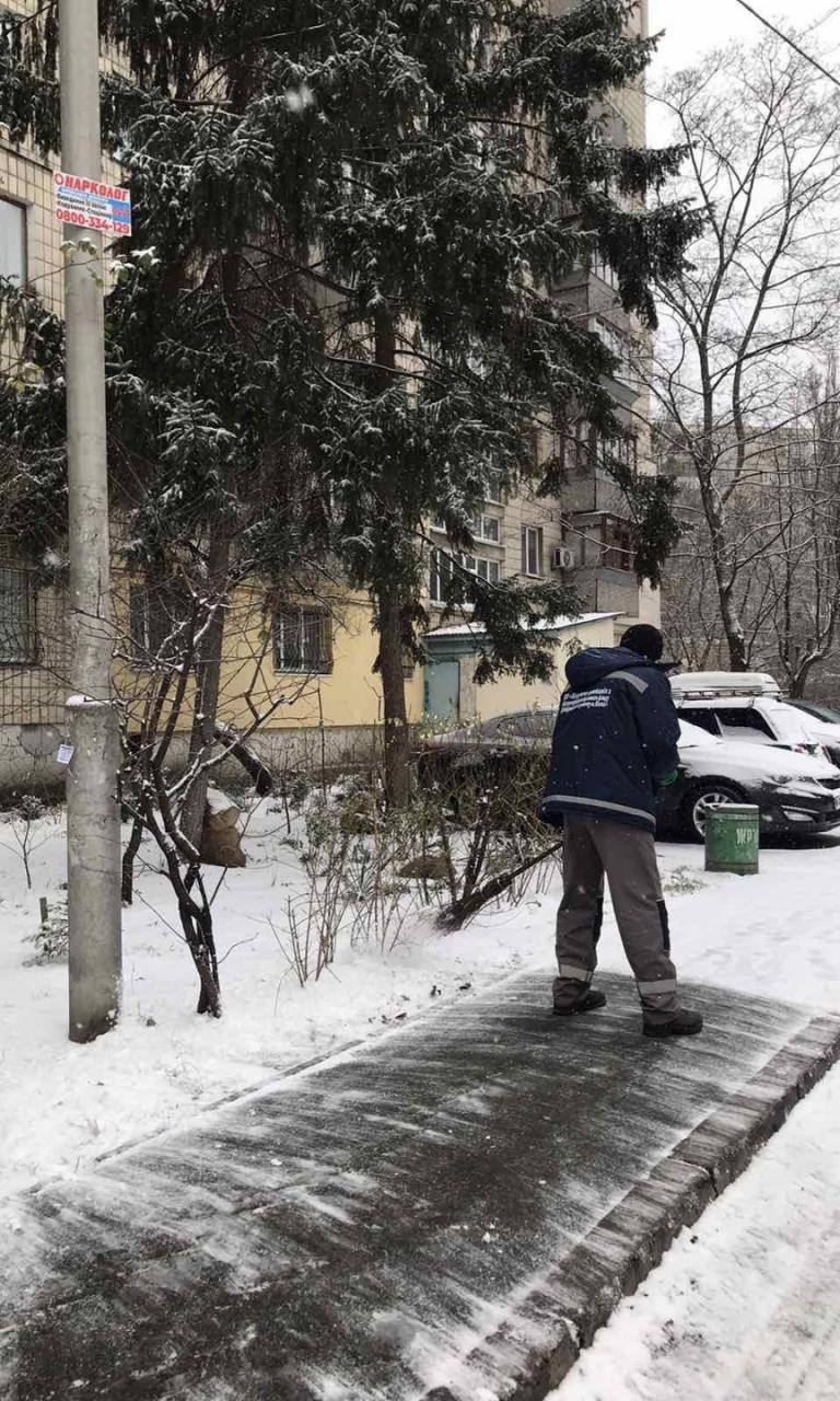 🦺Парки та сквери прибирають від снігу та здійснюють протиожеледну обробку озеленювачі Дніпровського району.