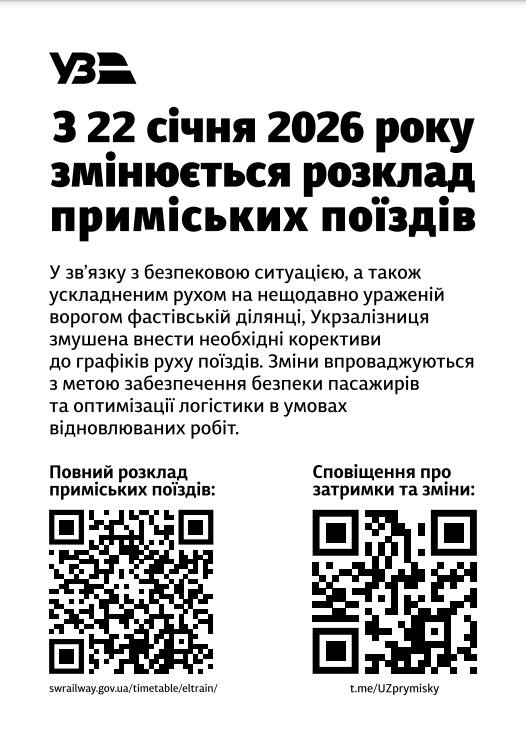 У зв’язку з безпековою ситуацією, а також ускладненим рухом на нещодавно ураженій ворогом фастівській ділянці, АТ «Укрзалізниця» змушена внести необхідні корективи до графіків руху поїздів. Зміни впроваджуються з метою забезпечення