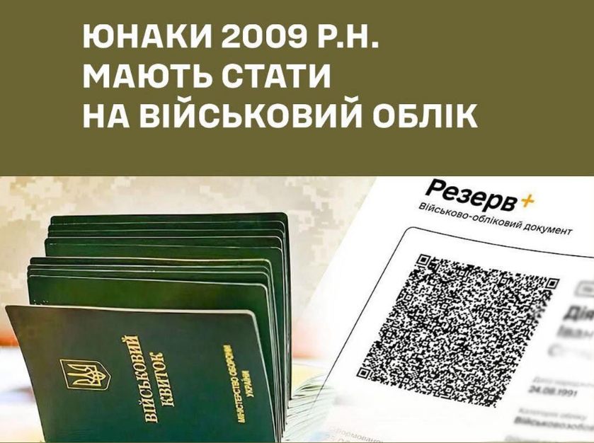 📢 УВАГА! ВЗЯТТЯ НА ВІЙСЬКОВИЙ ОБЛІК ПРИЗОВНИКІВ 2009 РОКУ НАРОДЖЕННЯ