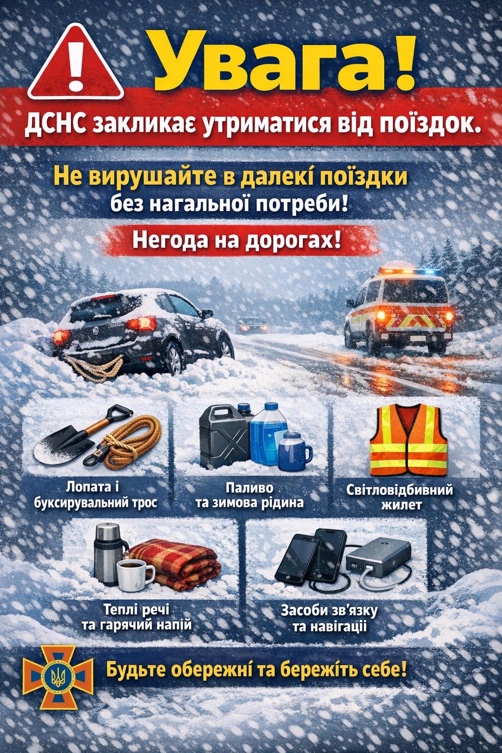 УВАГА! ДСНС ЗАКЛИКАЄ УТРИМАТИСЯ ВІД ПОЇЗДОК