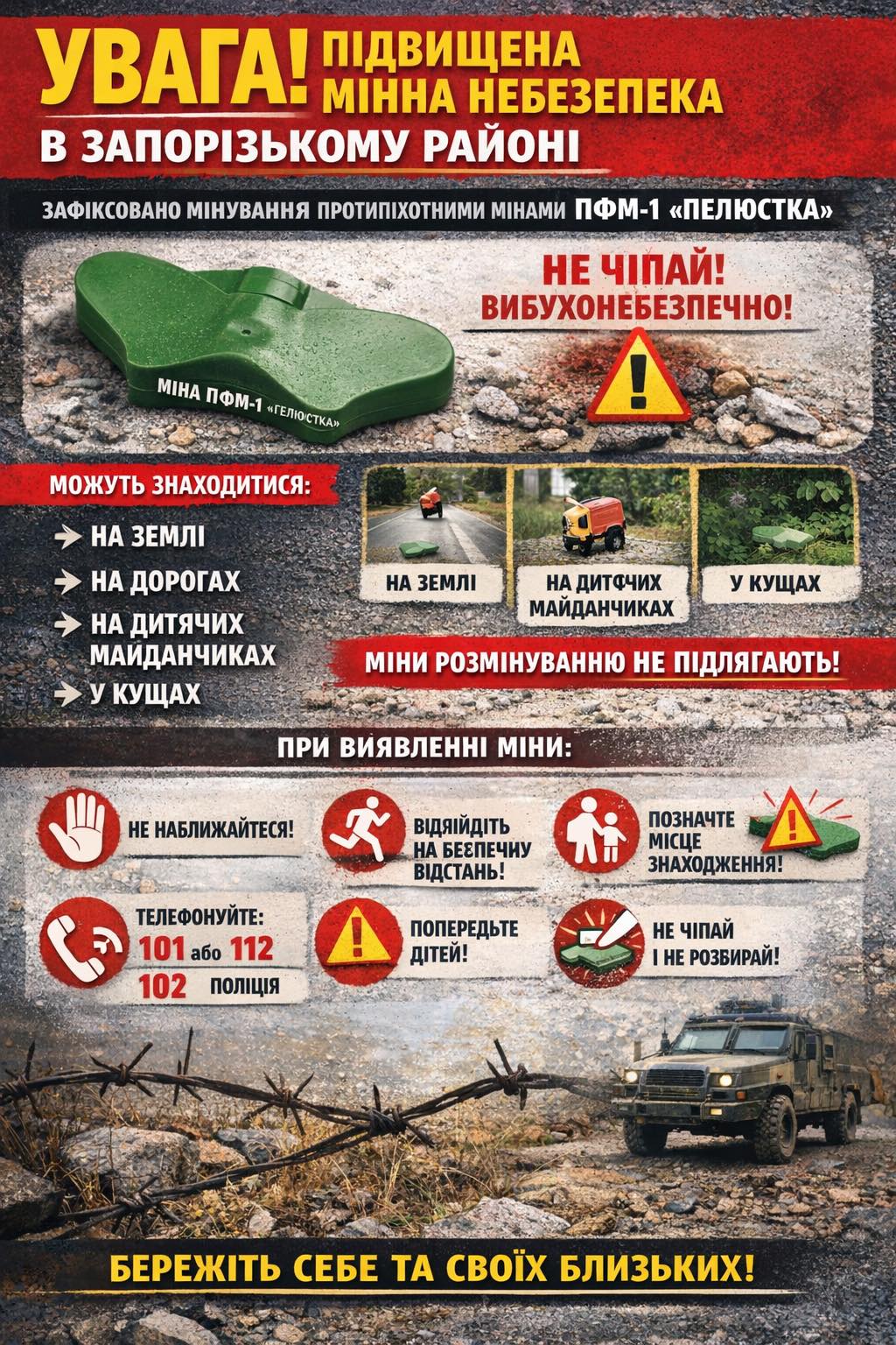 УВАГА! ПІДВИЩЕНА МІННА НЕБЕЗПЕКА В ЗАПОРІЗЬКОМУ РАЙОНІ