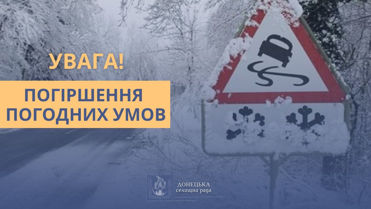 УВАГА! ПОГІРШЕННЯ ПОГОДНИХ УМОВ Шановні жителі громади! За інформацією синопт…