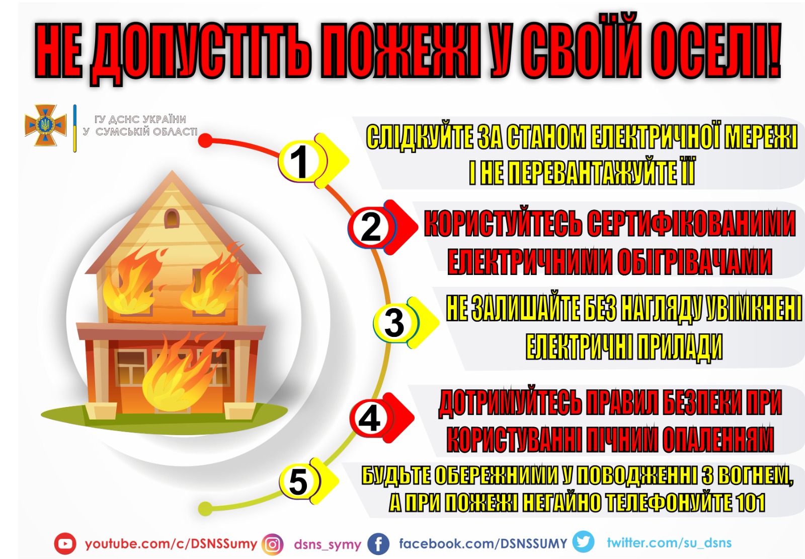 З метою недопущення виникнення пожеж, збереження життя та здоров’я громадян Головне управління ДСНС України у Сумській області нагадує основні правила пожежної безпеки: