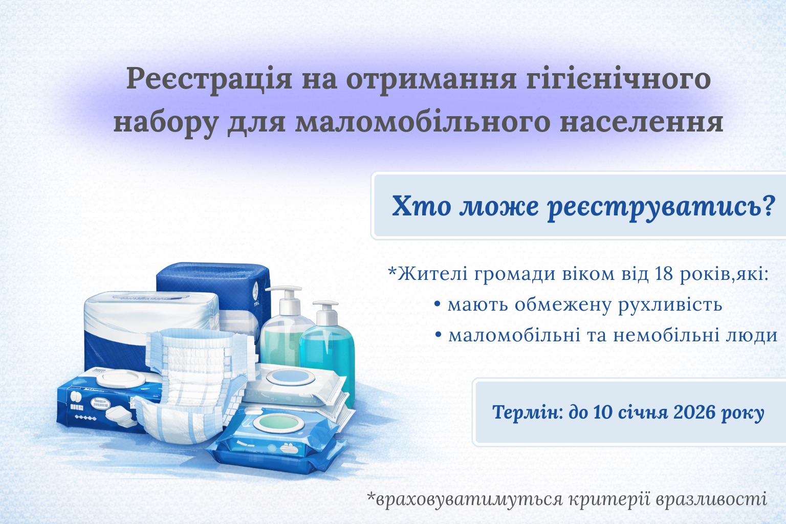 📢 УВАГА! РЕЄСТРАЦІЯ НА ОТРИМАННЯ ГІГІЄНІЧНОГО НАБОРУ ДЛЯ МАЛОМОБІЛЬНОГО НАСЕЛЕННЯ