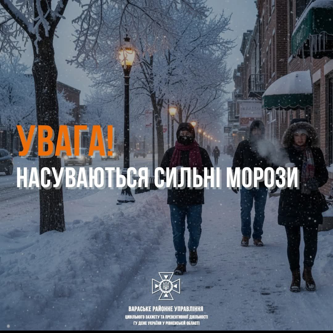 УВАГА! СИЛЬНІ МОРОЗИ Вараська рятувальники наголошують що морози на найближчі 4…