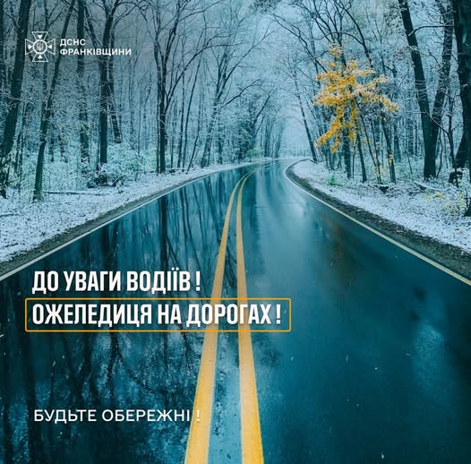 Увага❗Впродовж доби 16 січня, по області на дорогах утримається ожеледиця. (1 рівень небезпечності, жовтий).