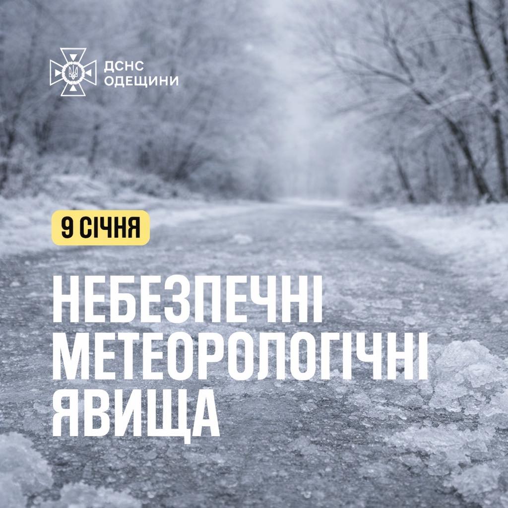 На Одещині, протягом доби 9 січня, очікується погіршення погодних умов: