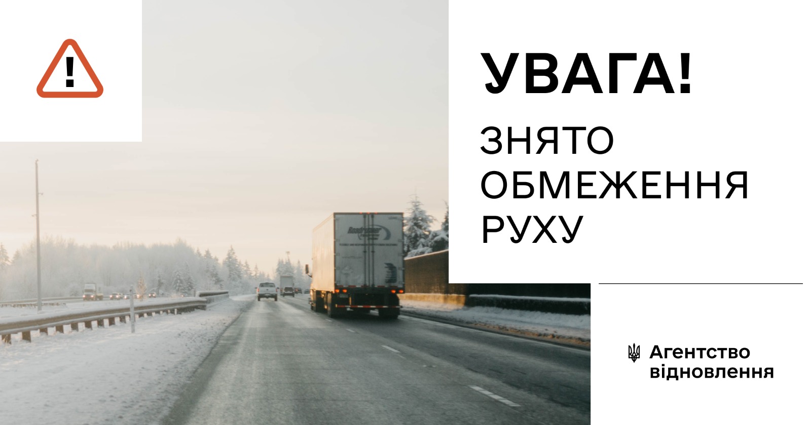 Увага!У зв’язку зі стабілізацією погодних умов та відновленням безпечного проїзду автомобільного транспорту Служба відновлення та розвитку інфраструктури у Харківській області повідомляє про відновлення руху великовагових транспортних засобів масою понад 10 тонн з 06:00 години 31 січня 2026 року.