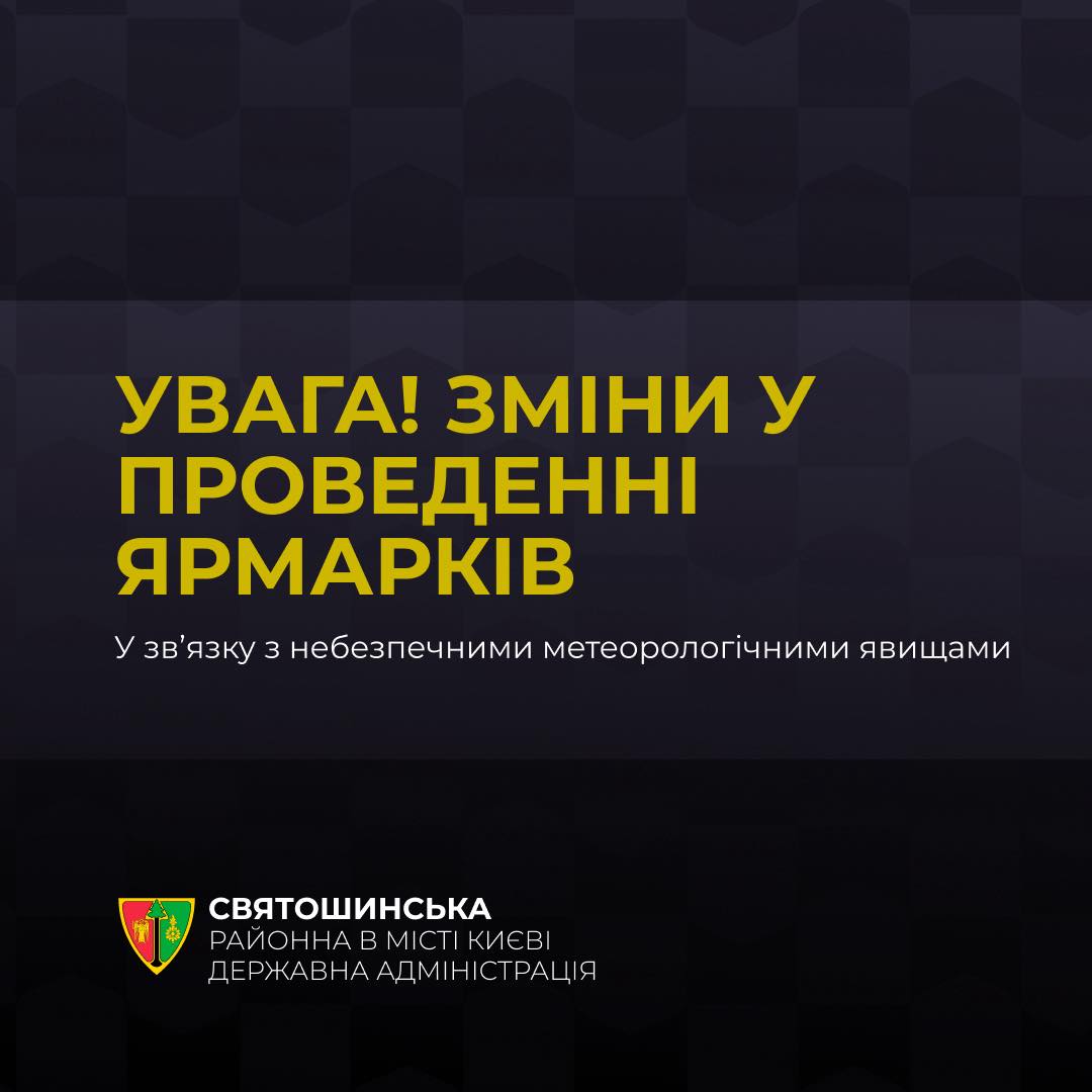 У зв’язку з очікуваними небезпечними метеорологічними явищами, зокрема значним зниженням температури повітря, сильним снігопадом та можливим утворенням снігових заметів, проведення запланованих ярмарків на території району з 13 по 15 січня скасовано.