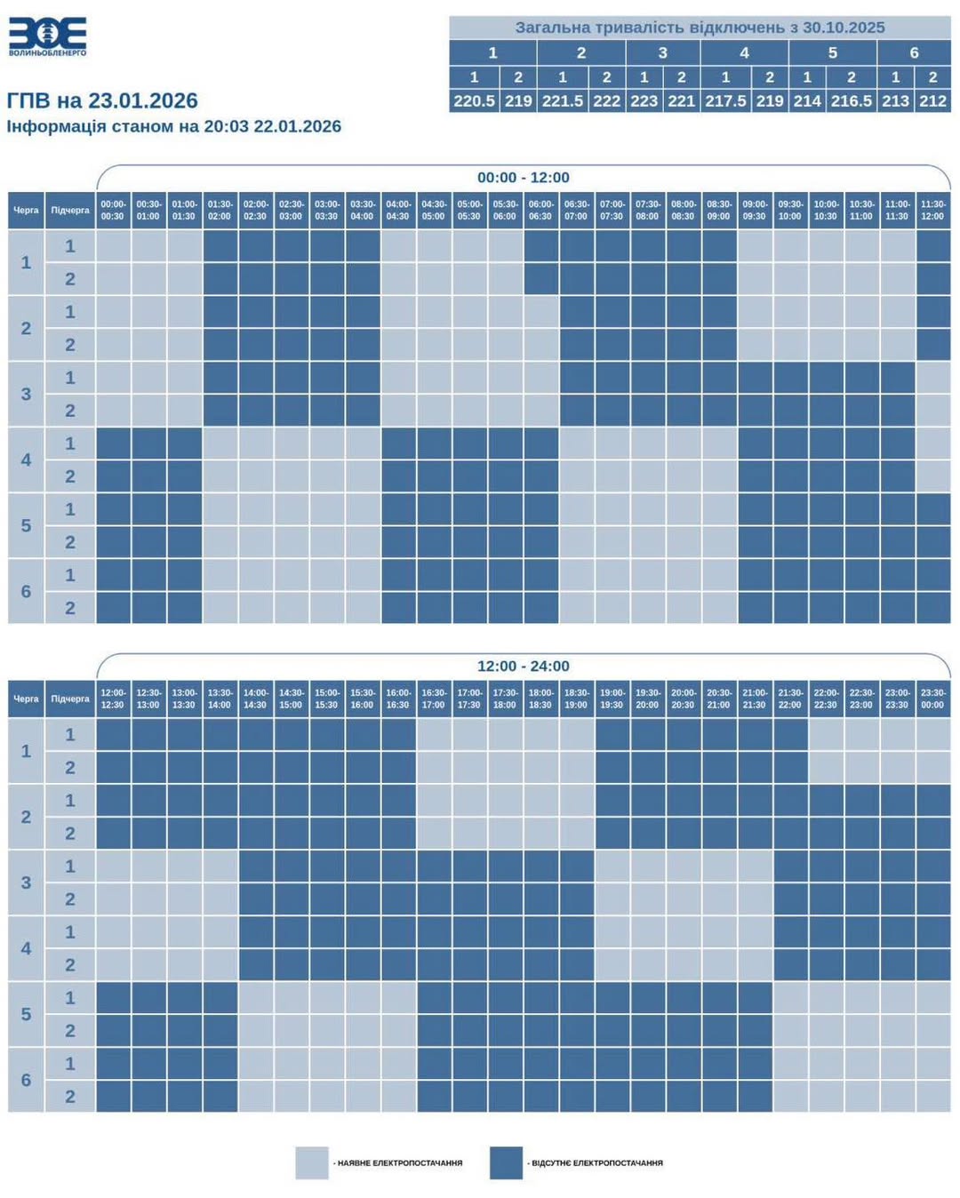 📌 Час фактичного відключення та відновлення електропостачання може відрізнятися на 20–30 хвилин через технологічний процес перемикання черг.
