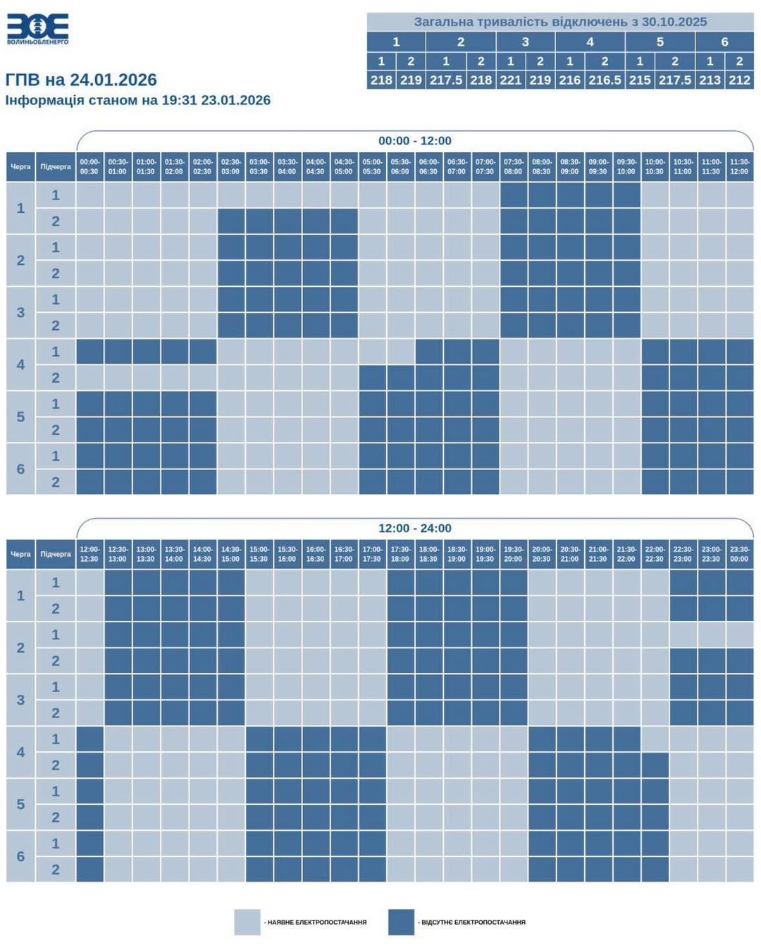 📌 Час фактичного відключення та відновлення електропостачання може відрізнятися на 20–30 хвилин через технологічний процес перемикання черг.