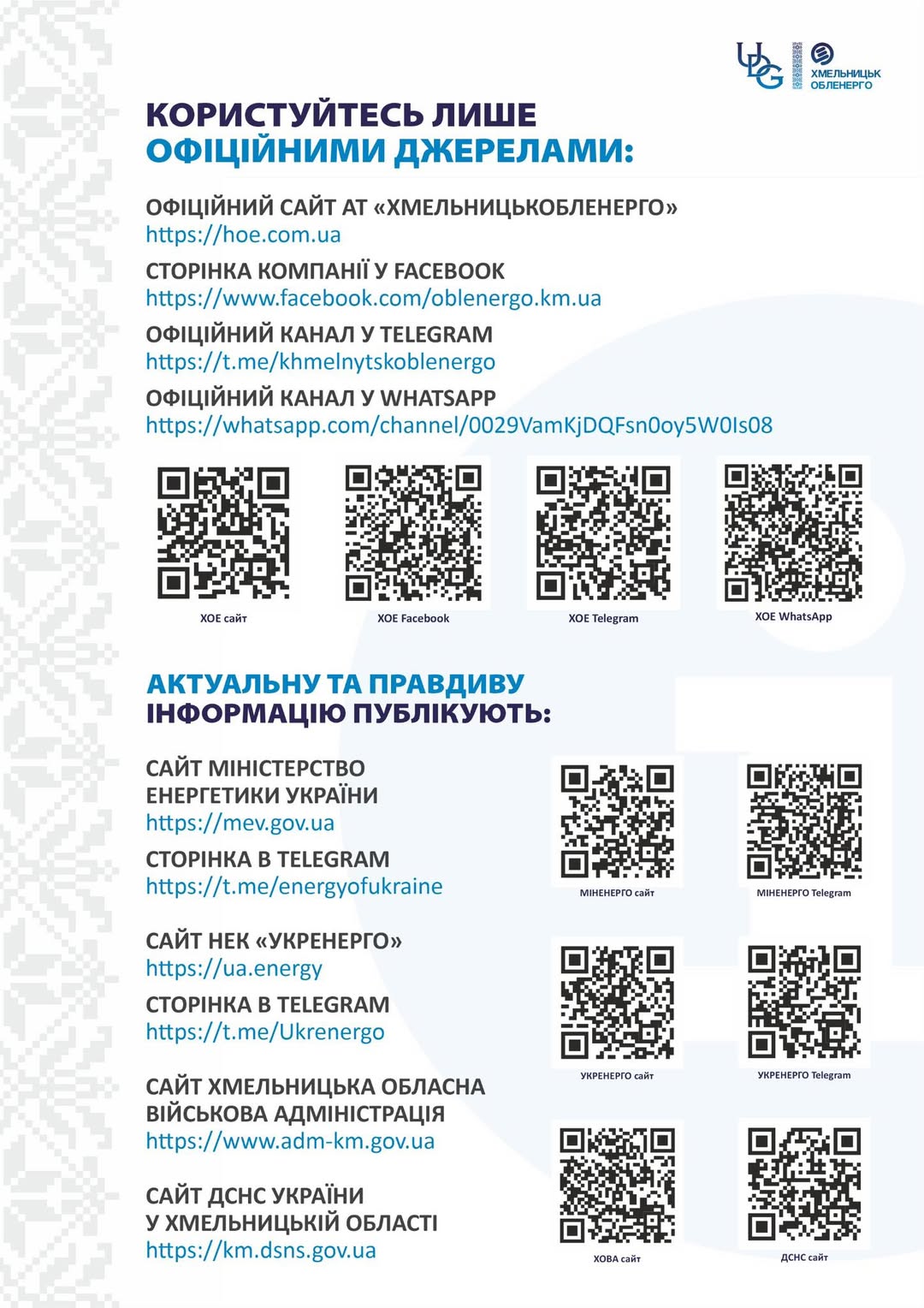 • офіційному сайту АТ «Хмельницькобленерго» https://hoe.com.ua/;