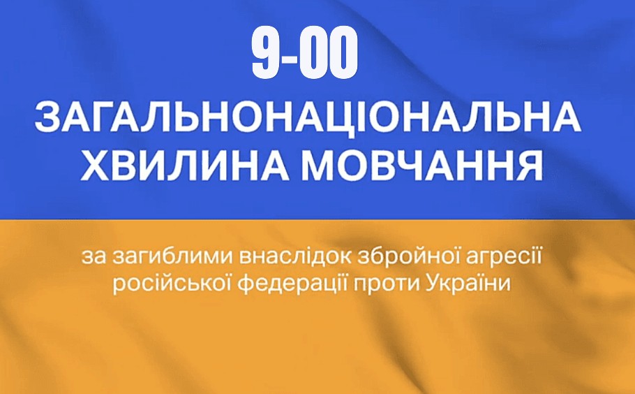 Щоранку о 09:00 год. в Україні проводиться загальнонаціональна хвилина мовчання за загиблими у війні українцями!