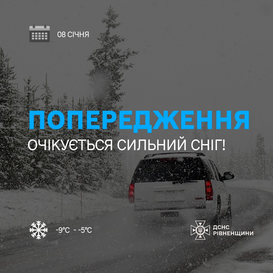 За інформацією Рівненського обласного центру з гідрометеорології, 08 січня у Рівному та області очікується сильний сніг.