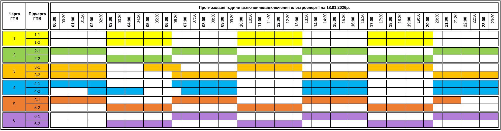 Увага! Змінено графік погодинних включень/відключень електроенергії ГПВ на 18.01.2026 згідно з розпорядженням НЕК «Укренерго».