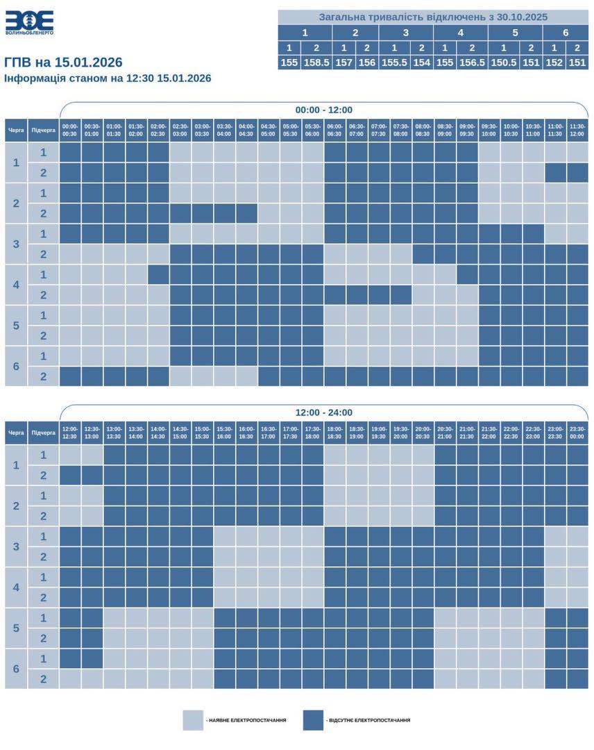 Увага! Оновлення графіків станом на 12:30. Через складну ситуацію в енергосисте…