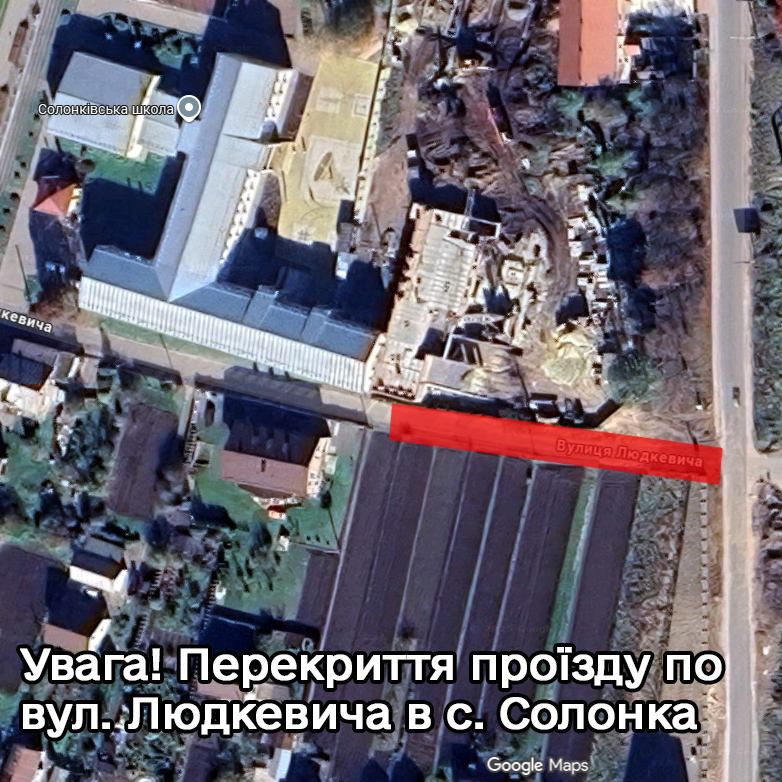 Увага! Перекриття проїзду по вул. Людкевича в с. Солонка!