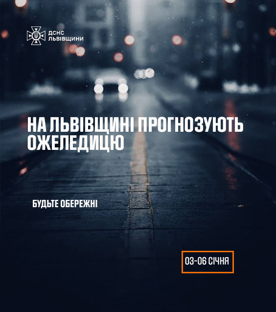 За повідомленням Львівського регіонального центру з гідрометеорології України на території Львівської області та по місту Львову 03 – 06 січня на дорогах ожеледиця.