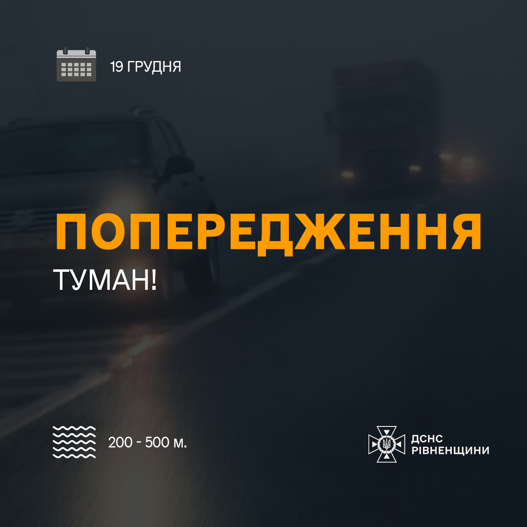 Наразі у місті Рівне та по всій області утримується туман із видимістю 200–500 метрів. Через погіршення погодних умов оголошено перший рівень небезпечності – жовтий.