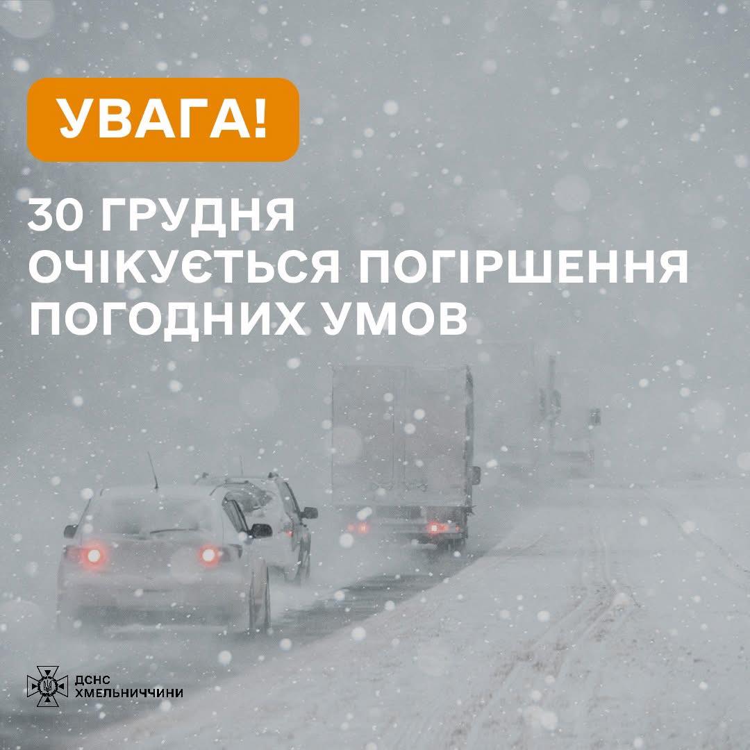 ‼️ Увага! 30 грудня на території області очікується погіршення погодних умов
