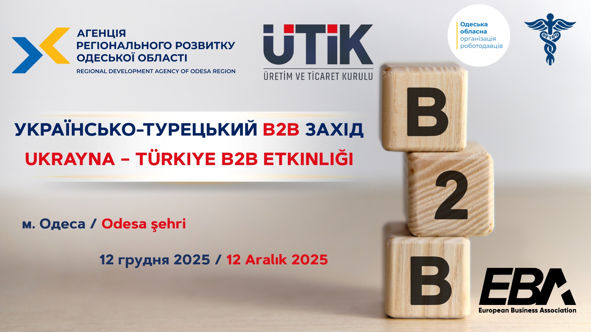 Офіс Торгового Аташе Генерального консульства Туреччини в м. Одеса (T.C. Odesa Başkonsolosluğu) спільно з Агенцією регіонального розвитку Одеської області у співпраці з Об’єднання організацій роботодавців Одеської області діловий захід за участю представників одеського та турецького бізнесу!