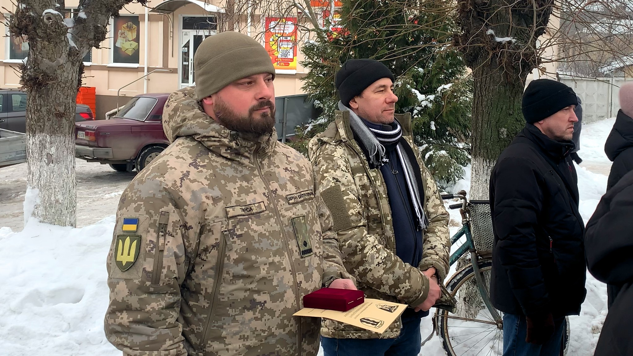 🎖 Особливим і найбільш зворушливим моментом заходу стало нагородження нашого земляка. Секретар селищної ради Ігор Василишин та майор Дмитро Тирса вручили почесну державну нагороду — Комбатантський хрест — захиснику Анатолію Вовку. Громада щиро вітала воїна, дякуючи за мужність та вірність присязі. Його подвиг є живим доказом того, що Україну тримають люди — ті, хто бореться і хто не дозволяє стерти нашу історію.