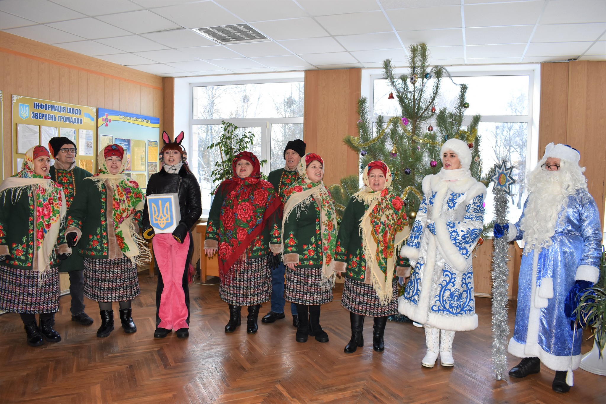 Новорічний настрій працівникам виконавчого комітету принесли артисти Чутівського Будинку культури.