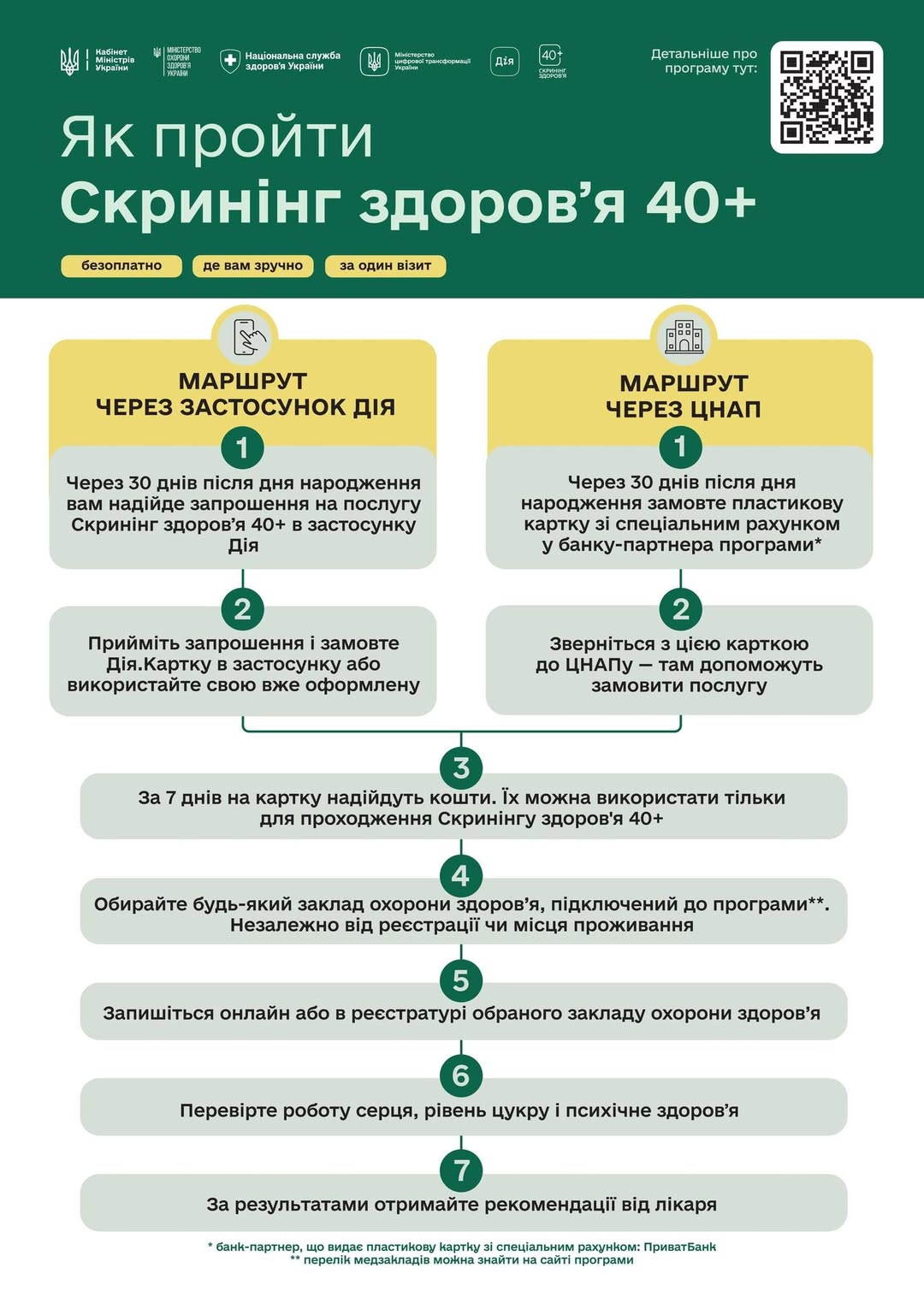 Уже з 1 січня 2026 року стартує програма Скринінг здоров’я 40+. Вона допоможе вчасно виявляти ризики серцево-судинних хвороб, цукрового діабету та проблем ментального здоров’я на ранніх етапах.