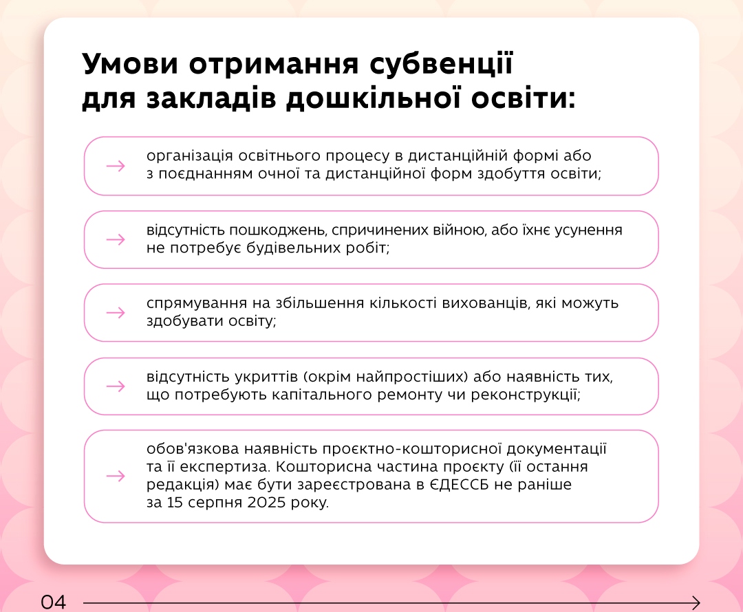 🔹ЗДО із загальною чисельністю вихованців не менш як 100 осіб;