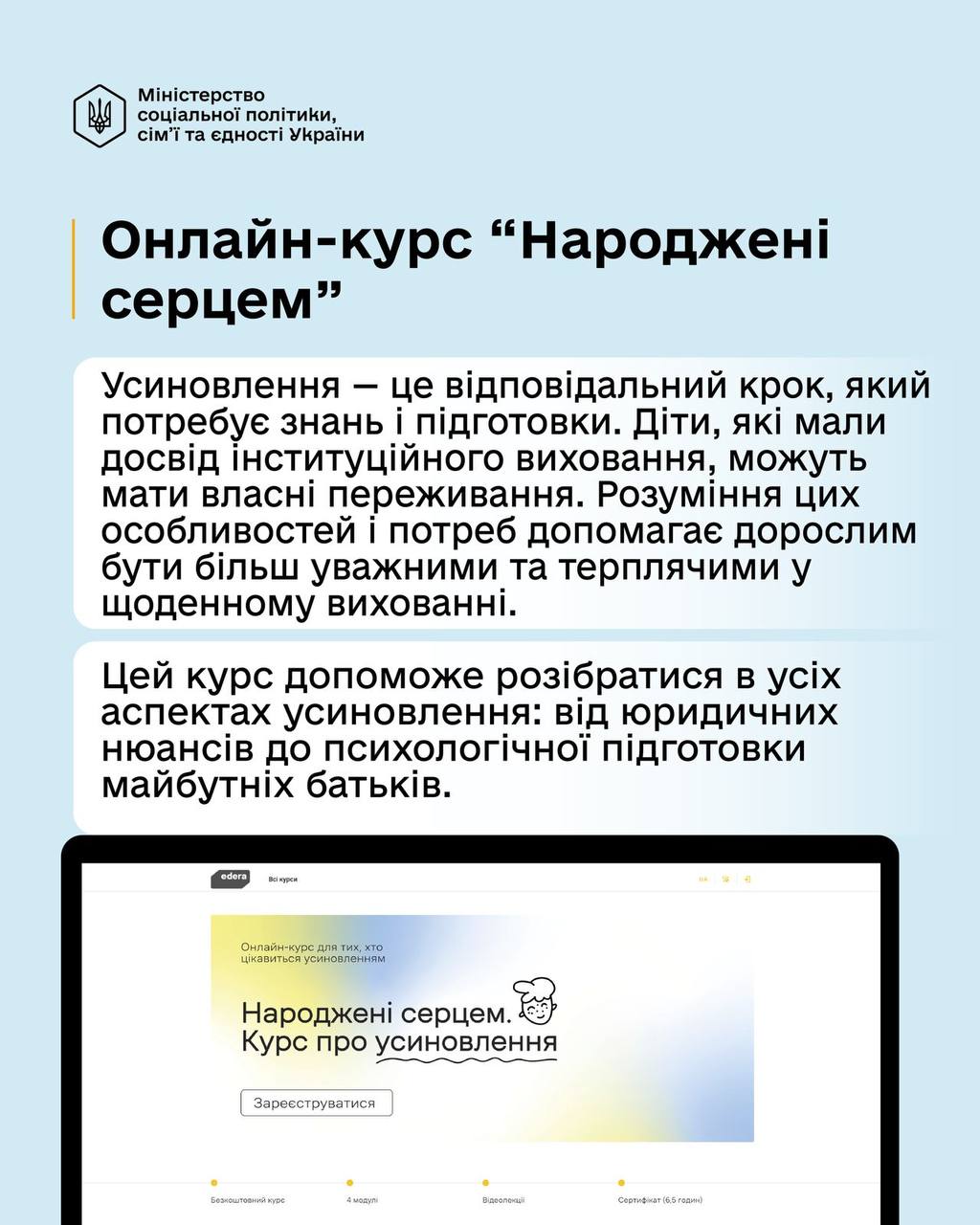 ✅ В інфографіках розповідається детальніше про усиновлення, які курси можна пройти для отримання додаткових знань про цей процес, як стати кандидатом в усиновлювачі.