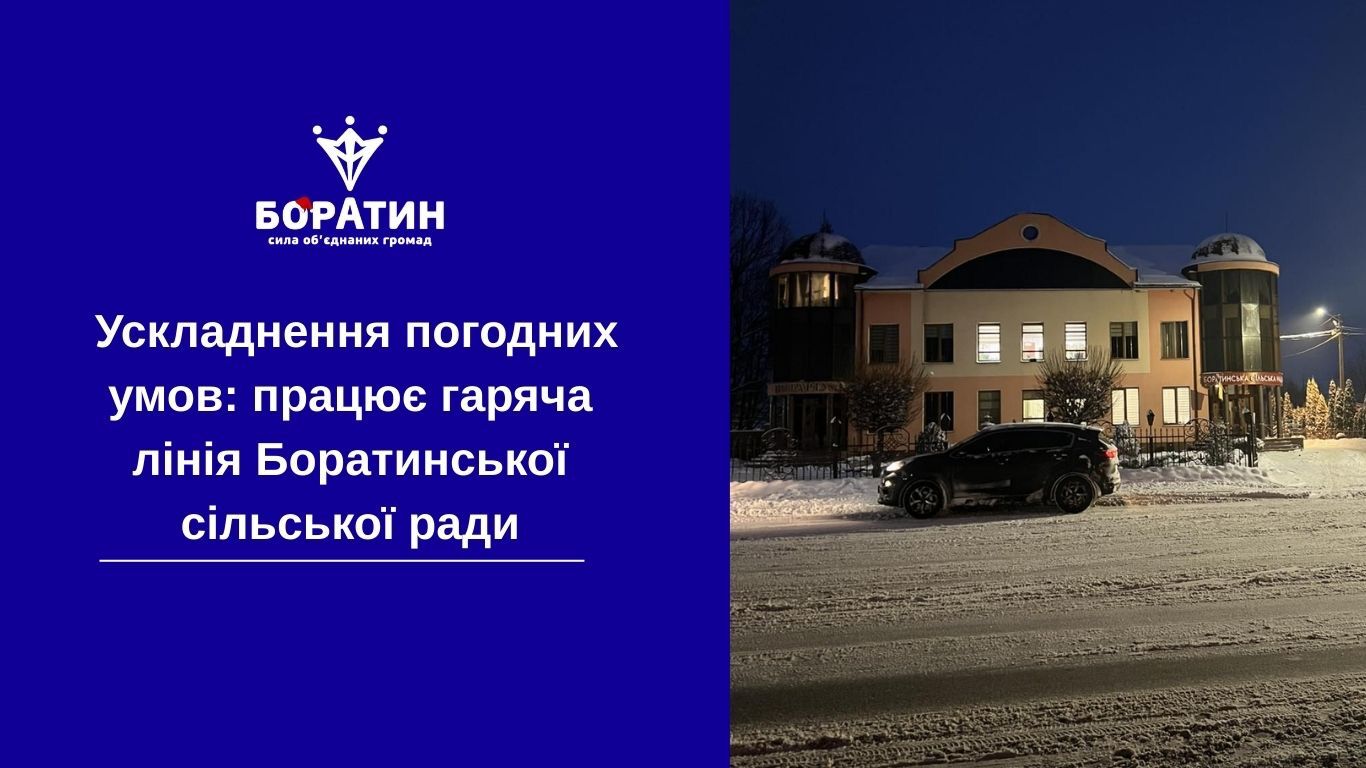 У зв’язку з ускладненням погодних умов відділ благоустрою Боратинської сільської ради повідомляє про роботу гарячої лінії.