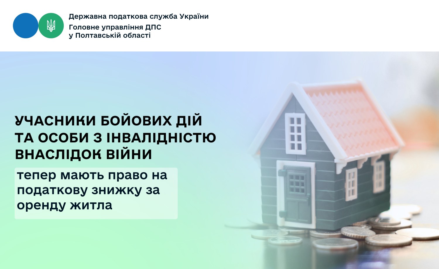 Головне управління ДПС у Полтавській області інформує, що з 1 січня 2026 року розширено коло платників податку, які мають право на податкову знижку за витратами на оренду житла.
