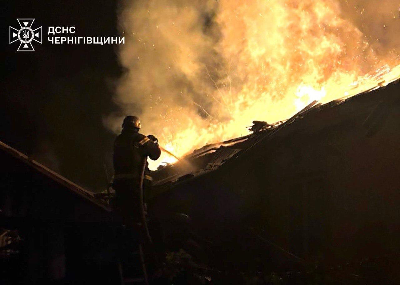 Учора пізно ввечері росіяни поцілили ударним дроном по селу Новгород-Сіверського району. Загорівся ангар. На місці працювали вогнеборці. За добу було 9 обстрілів – 31 вибух.