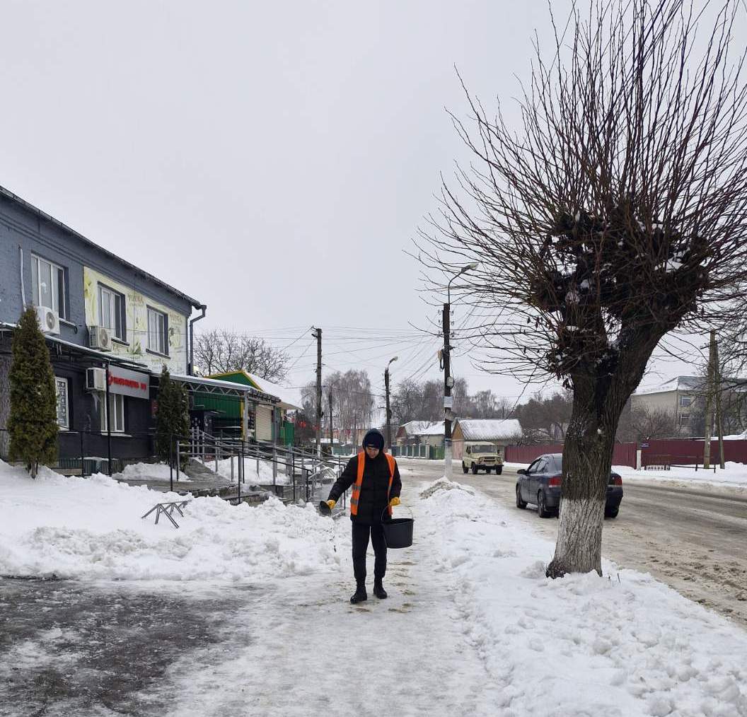 У Бобровицькій громаді триває розчищення доріг та обробка протиожеледними матері…