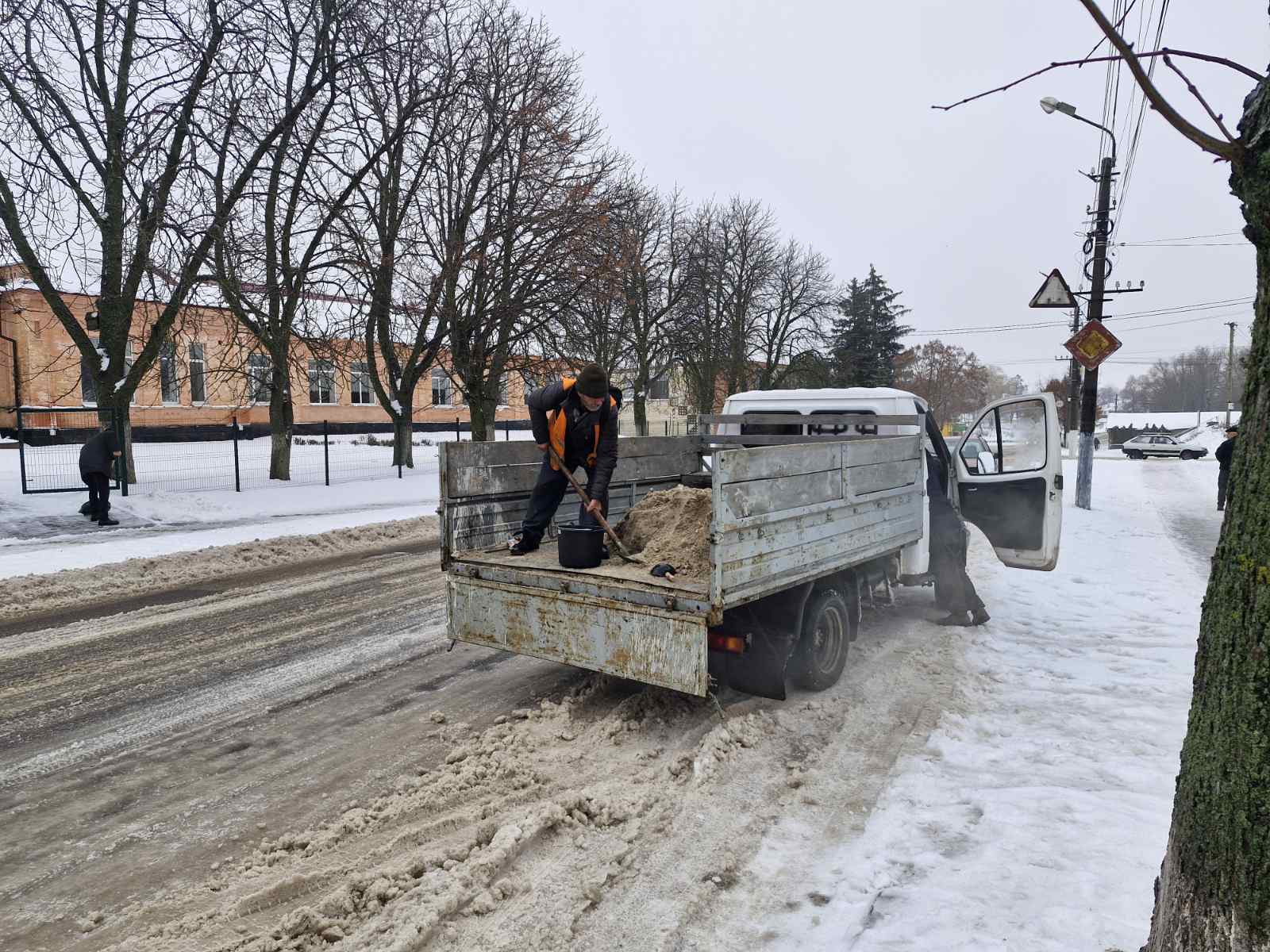 🚜Наразі проводяться заходи з очищення доріг від снігових заметів, а також обробка найбільш небезпечних ділянок автошляхів, тротуарів і зупинок громадського транспорту піщано-сольовою сумішшю для запобігання утворенню ожеледиці.