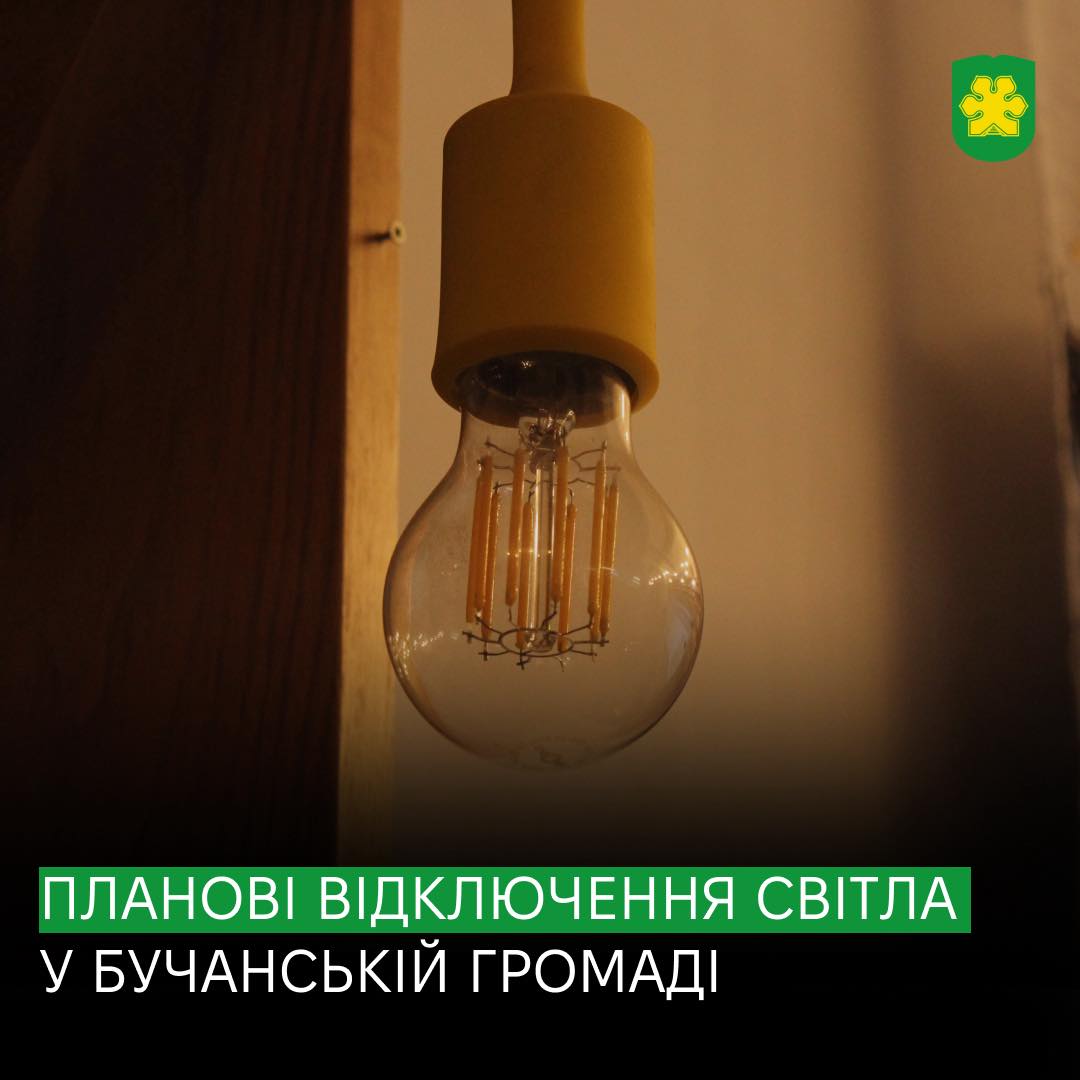 ⚡️ У Бучанській громаді відбудуться планові відключення електроенергії.