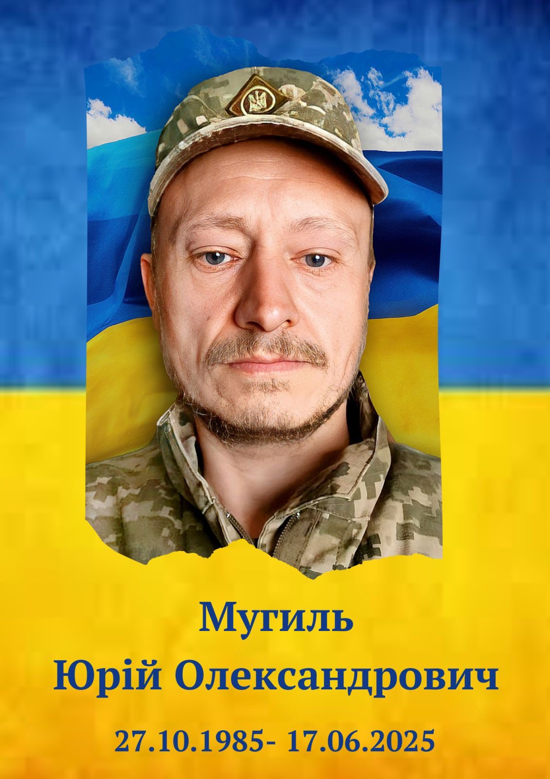 Юрій Олександрович – колишній номер обслуги 2 артилерійського взводу артилерійської батареї аеромобільного батальйону однієї з військових частин, солдат, вірний Військовій присязі на вірність Українському народу, мужньо виконавши військовий обов’язок, в бою за Україну, її свободу і незалежність, з 17.06.2025 року вважався таким, який зниклий безвісти, та станом на 24.11.2025 року тіло було ідентифіковано і встановлено, що Мугиль Ю.О. загинув 17.06.2025 року поблизу одного з населених пунктів Сумського району Сумської області внаслідок стрілецького бою з противником. Хоробрий, відважний Воїн, вірний побратим, за мир в Україні віддав найдорожче – своє життя.