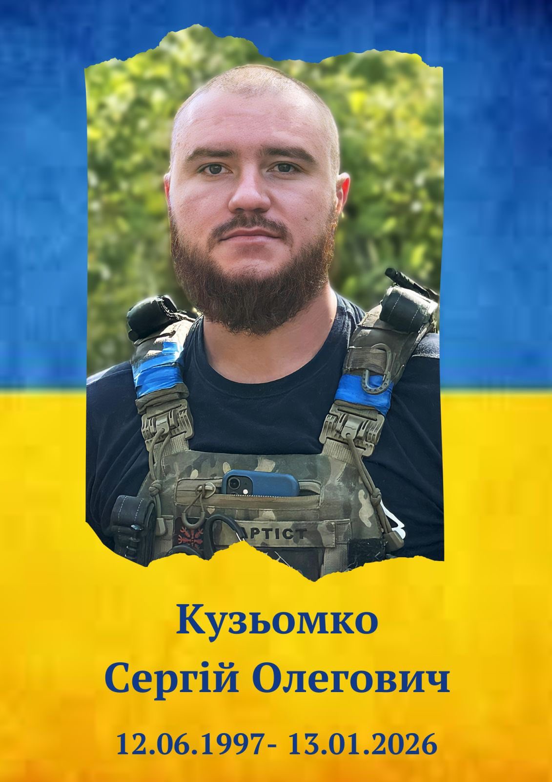 За кілька днів до смертельного поранення Кузьомко С.О. побував у рідному селі – приїздив на похорон друга, бачився з родиною. Повернувшись на передову, одразу ж приступив до виконання бойових завдань, пов’язаних із захистом Батьківщини. 13 січня 2026 року під час виконання чергового бойового завдання зі стримування військової агресії рф в одному з населених пунктів Покровського району Донецької області отримав тяжке поранення, не сумісне з життям. Терпляче зносячи страшенний біль тяжкого поранення, боровся за життя з усіх сил. На превеликий жаль, хоробре серце молодого сильного чоловіка не витримало… Січень, 13-е…Біль, сум, сльози, розпач, непоправна втрата для найрідніших: клята війна забрала у батьків люблячого сина, у дружини – коханого чоловіка, у сестри – люблячого брата. У жалобі Україна, громада і всі, хто знав великого життєлюба і патріота рідної землі Кузьомка Сергія Олеговича.