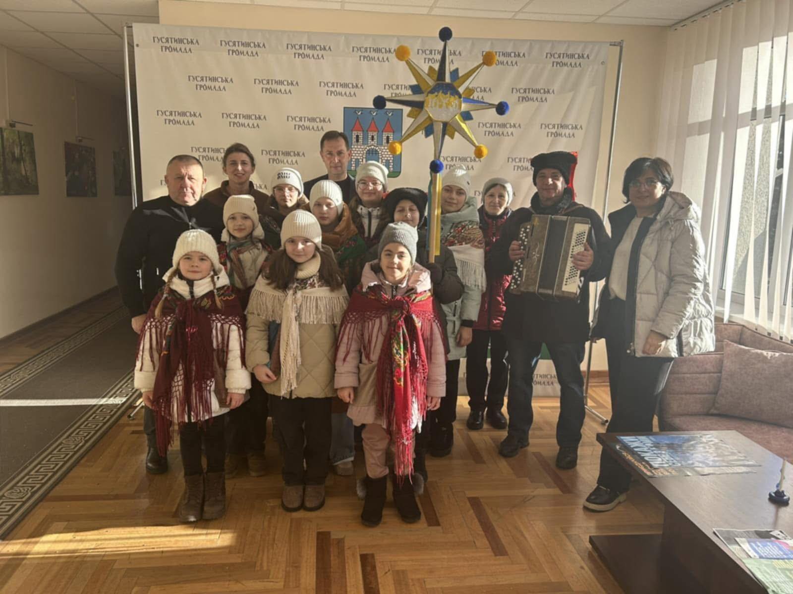 Вихованці Гусятинського центру дитячої та юнацької творчості побували з колядою та віншуваннями у Гусятинській селищній раді. Керівники подякували колядникам та побажали миру, спокою та найшвидшої Перемоги для усіх.