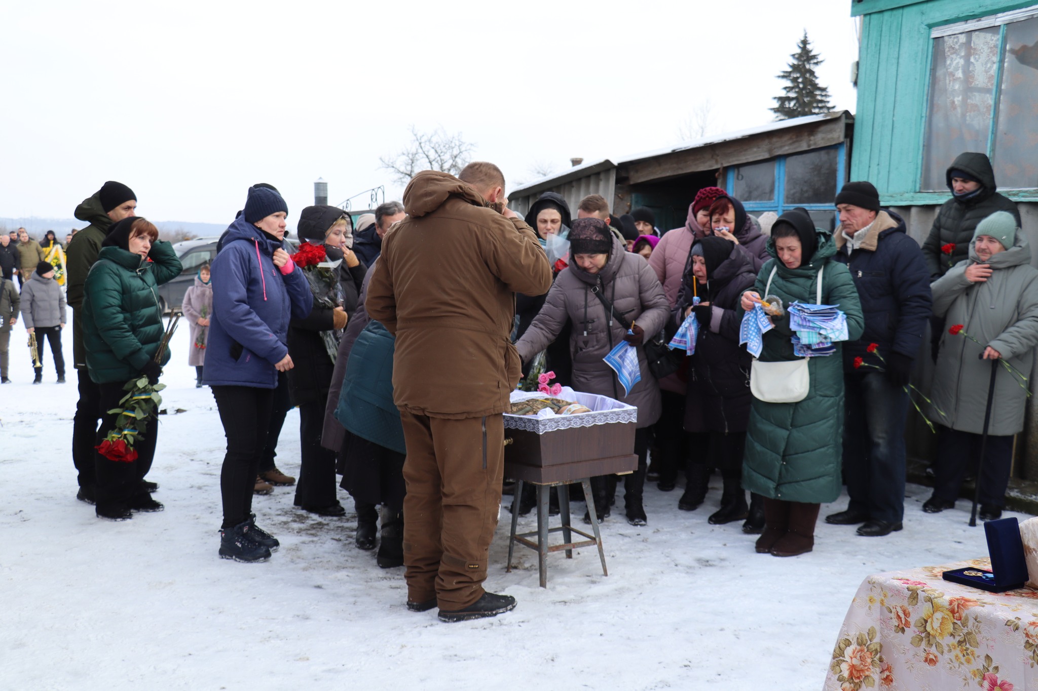 Попрощатися з Героєм до батьківського дому в селі Дернове прийшли секретар Тростянецької міської ради Наталія Ковальова, побратими, представники міської ради, старостату, закладів та установ громади, однокласники, друзі, колеги, сусіди. Заупокійну панахиду відслужив військовий капелан Національної гвардії України отець Андрій.