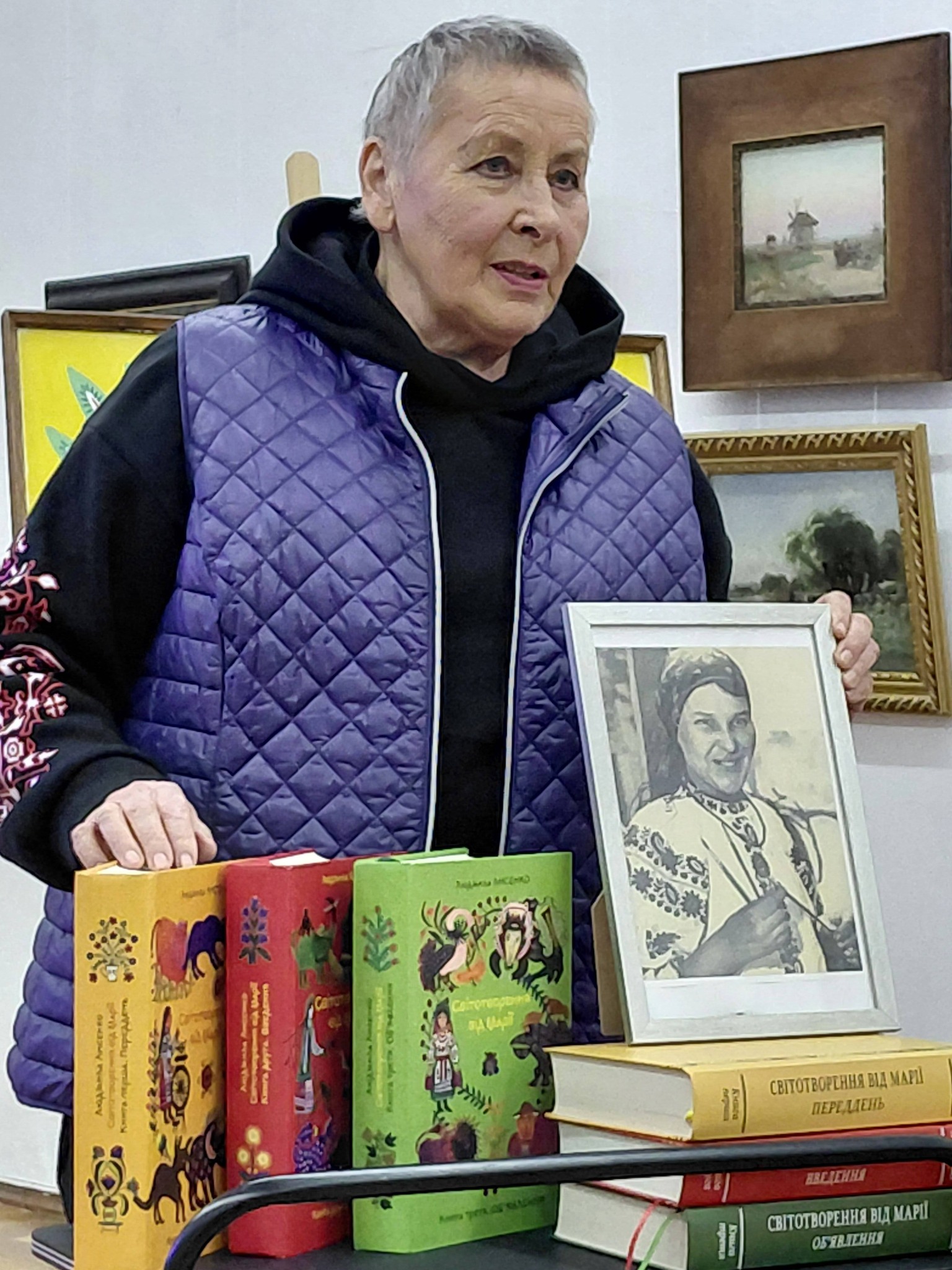 У День народження Марії Приймаченко неймовірна зустріч із авторкою трилогії “Світотворення від Марії” Людмилою Лисенко організована у ХОХМ хмельницький обласний художній музей. Підсилена оріналами малярських робіт народної художниці з фондів музею, розповідь пані Людмили про долю мисткині звучала зі щемом. Трагедія, що пережила ця українська сільська жінка з фізичними вадами, кохання, яке розірвала війна, та світ її квітів і диво-звірів відображені у книзі. А ще длкументальний фільм, відзнятий головною редакторкою Національної телерадіокомпанії України, справили неймовірне враження.