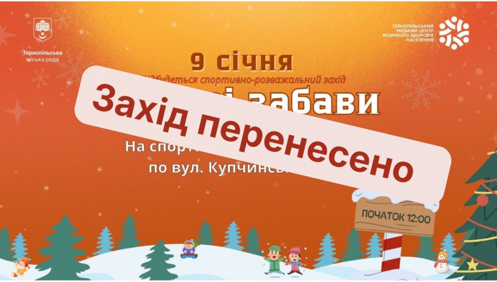 У ЗВ’ЯЗКУ З ПОГОДНИМИ УМОВАМИ СПОРТИВНО-РОЗВАЖАЛЬНИЙ ЗАХІД «ЗИМОВІ ЗАБАВИ» ПЕРЕНЕСЕНО.