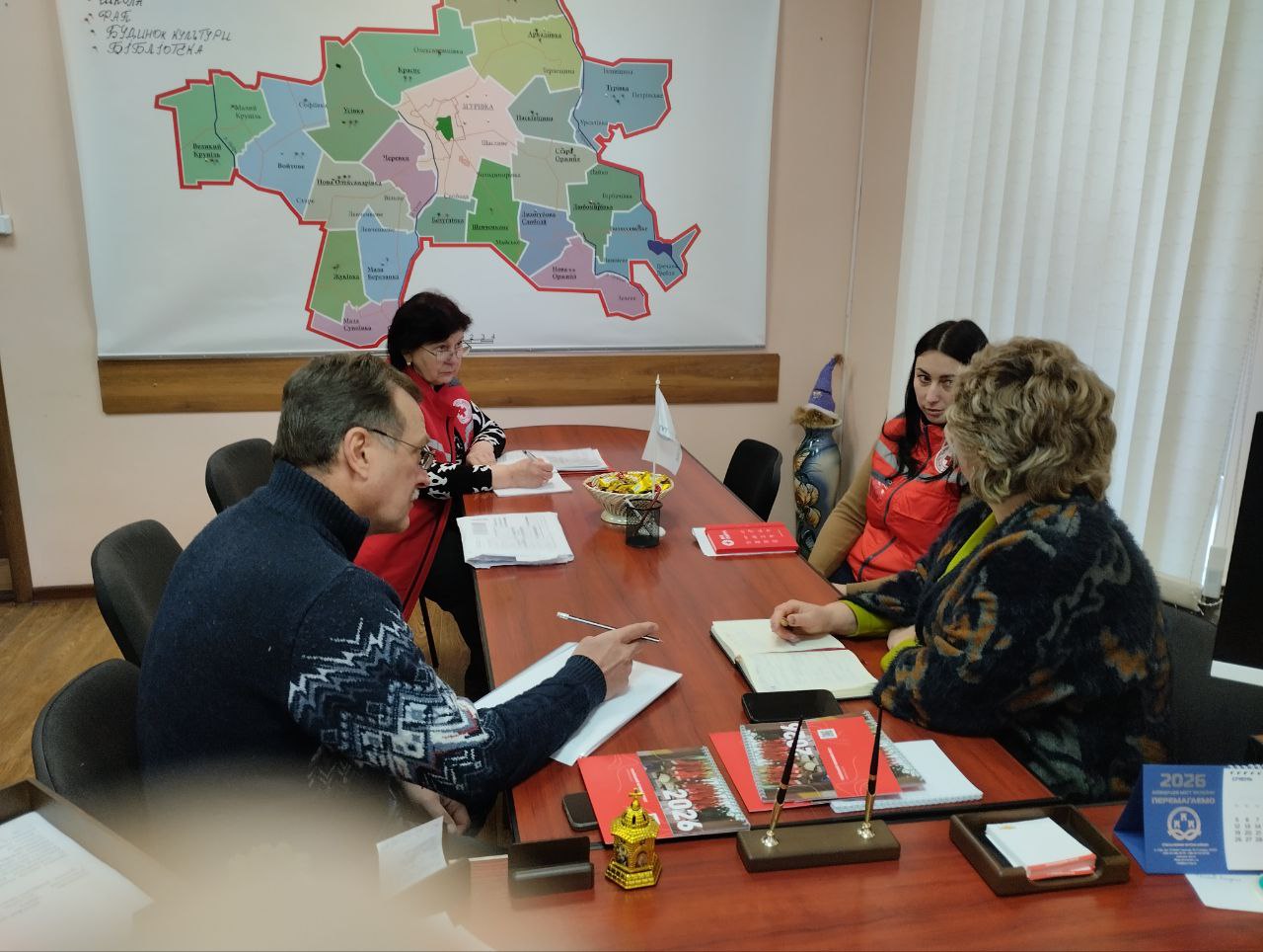 У Згурівській громаді Броварського району відбулася робоча зустріч за участі координатора проєкту «Мобільні медичні бригади» Київської обласної організації Товариства Червоного Хреста України – Альони Цільори, голови ГО «Український Червоний Хрест Броварського району» – Людмили Ярич, в.о. директора КНП “ЗГУРІВСЬКА ЛІКАРНЯ” – Олександра Зіборова та заступника селищного голови Згурівської селищної ради – Лариси Мельник.